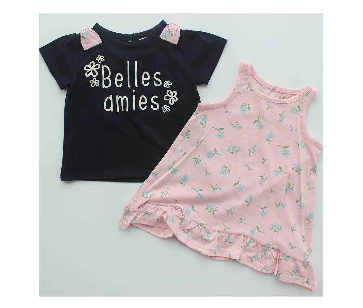 Super recommended Japanese order spring and summer baby girl floral two-piece short-sleeved top suspender skirt