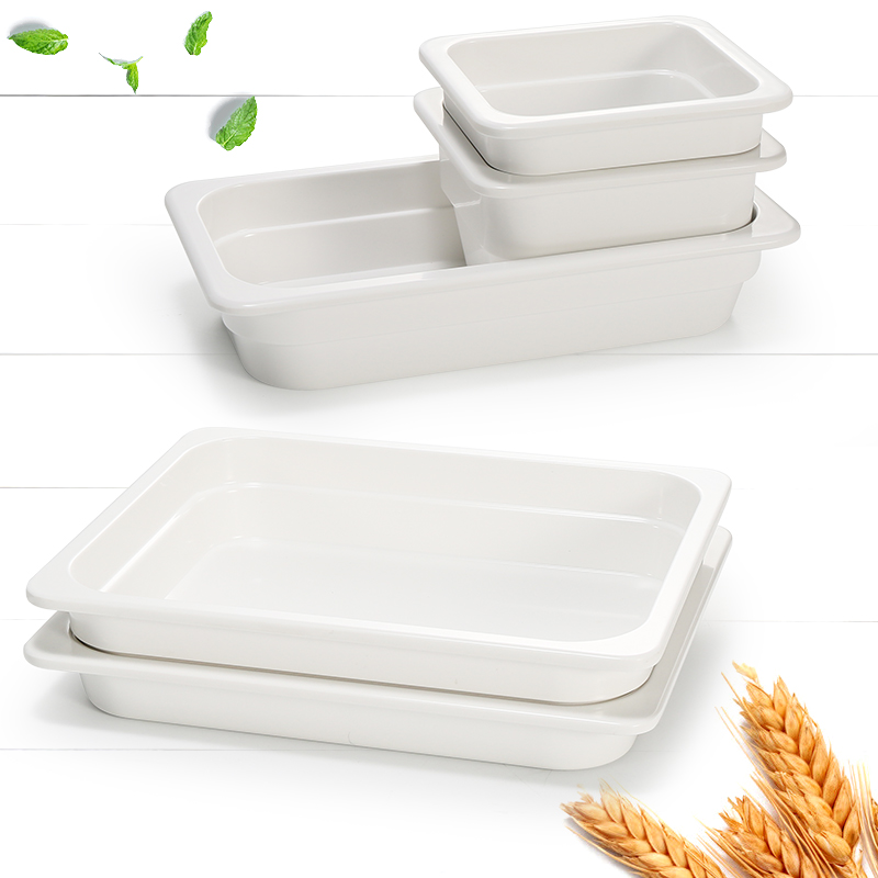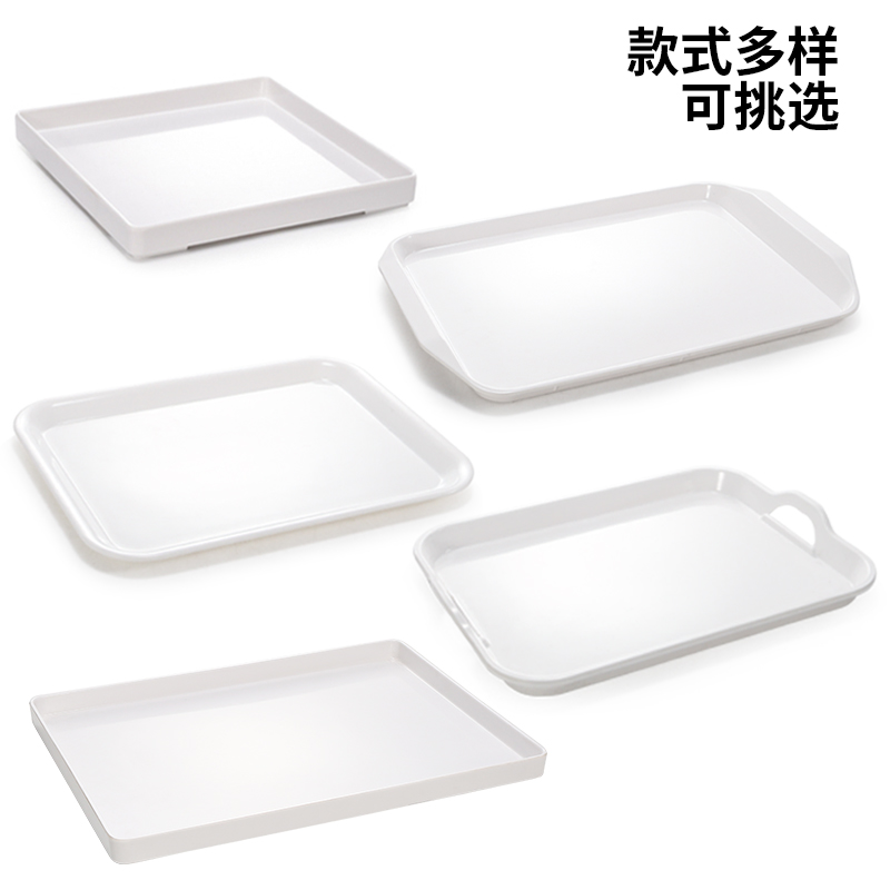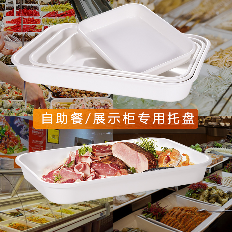 Imitation porcelain white deepening disc cooked food Cooked Tray of plastic Electorite Vegetable Basin Rectangular Hotel Halogen Flavor Buffet Tray