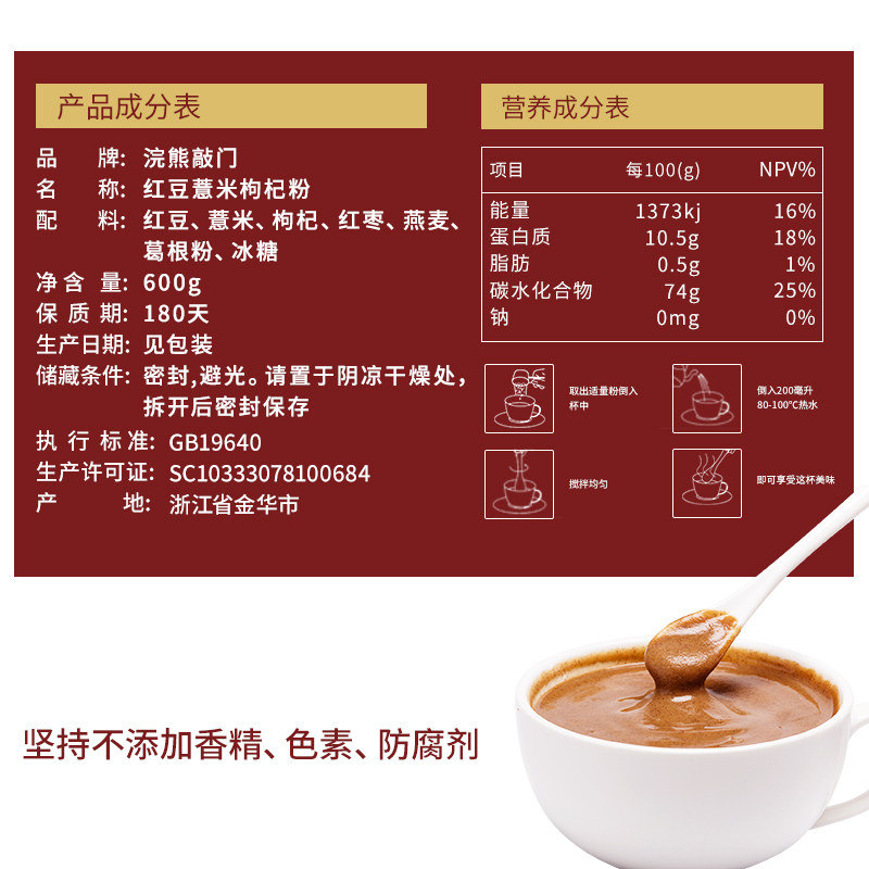 Gift box of 2 cans (600g red bean barley flour * 2 exquisite ceramic cups and spoons)