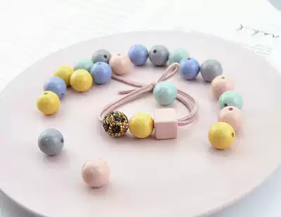 Korean 15mm straight hole round solid color beads spring color hair ring perforation handmade DIY jewelry accessories Hair accessories materials