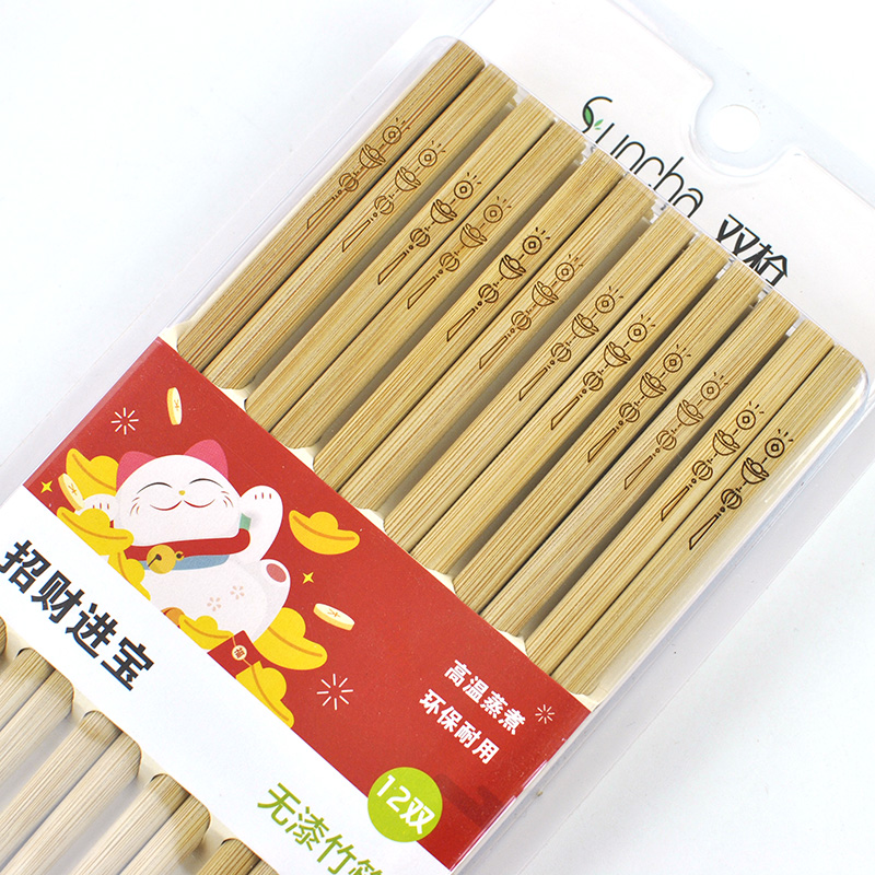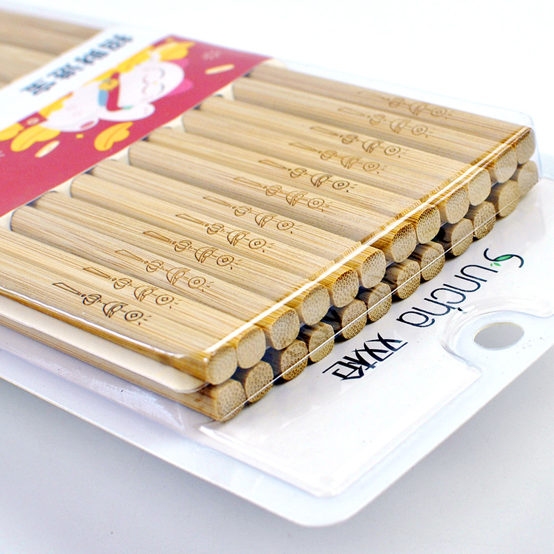 (Buy 1 get 1) Two gun bamboo chopsticks natural lacquerless wax carved household chopsticks hotel restaurant chopsticks set