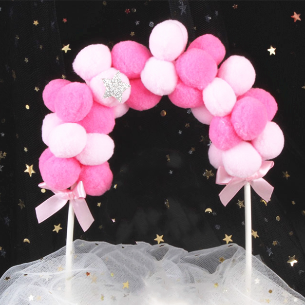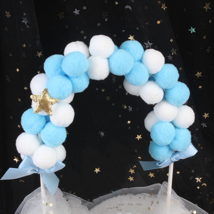 Pink horse riding girl Blue horse riding girl large pink hair ball flower arch Large blue hair ball flower arch golden aluminum wire 5pcs pink foam windmill 3pcs gold acrylic one 10pcs