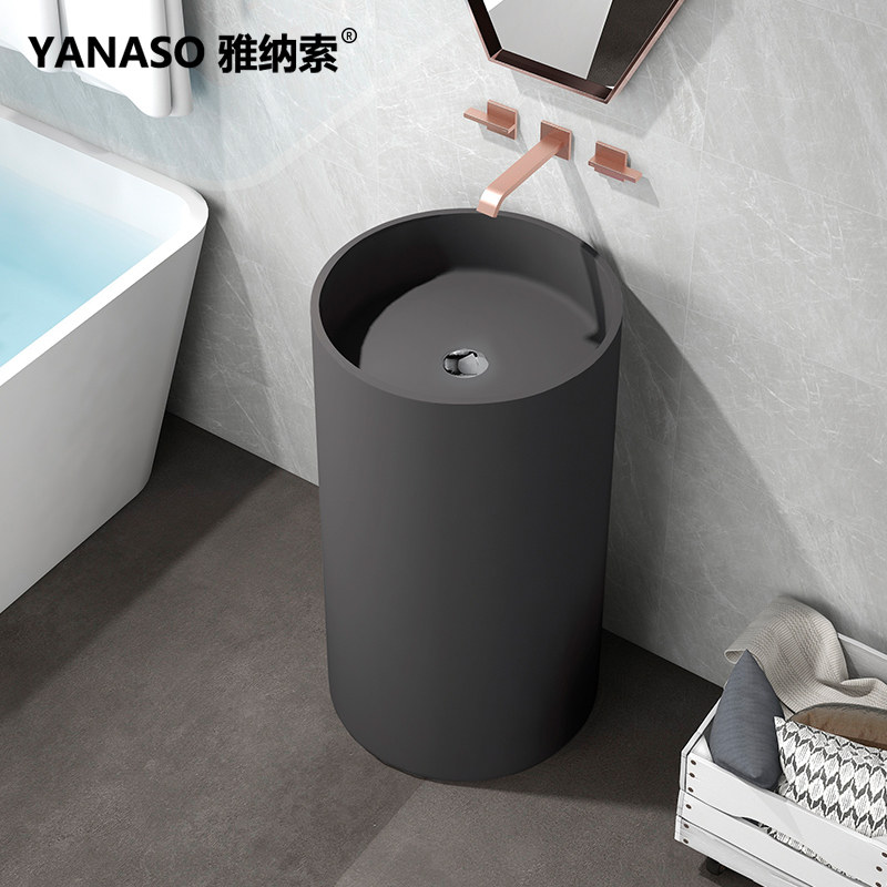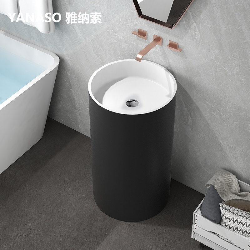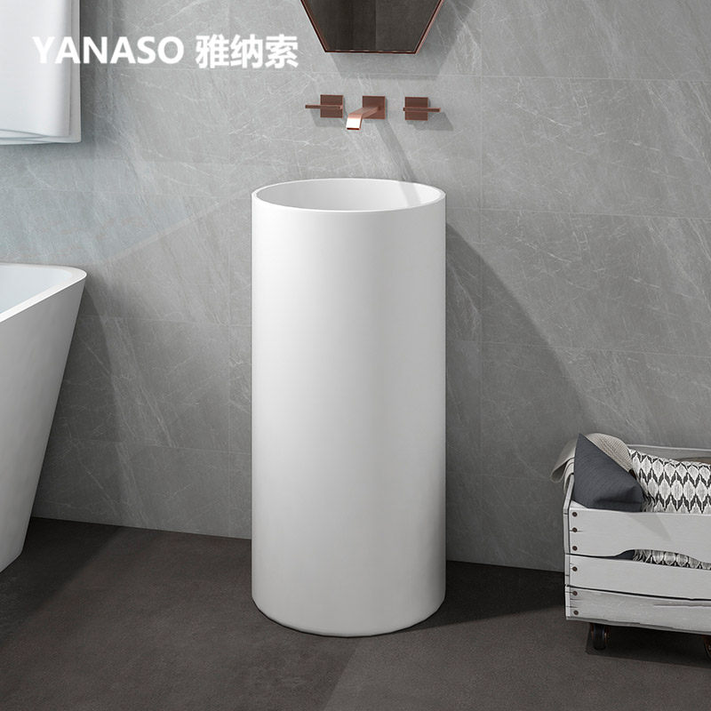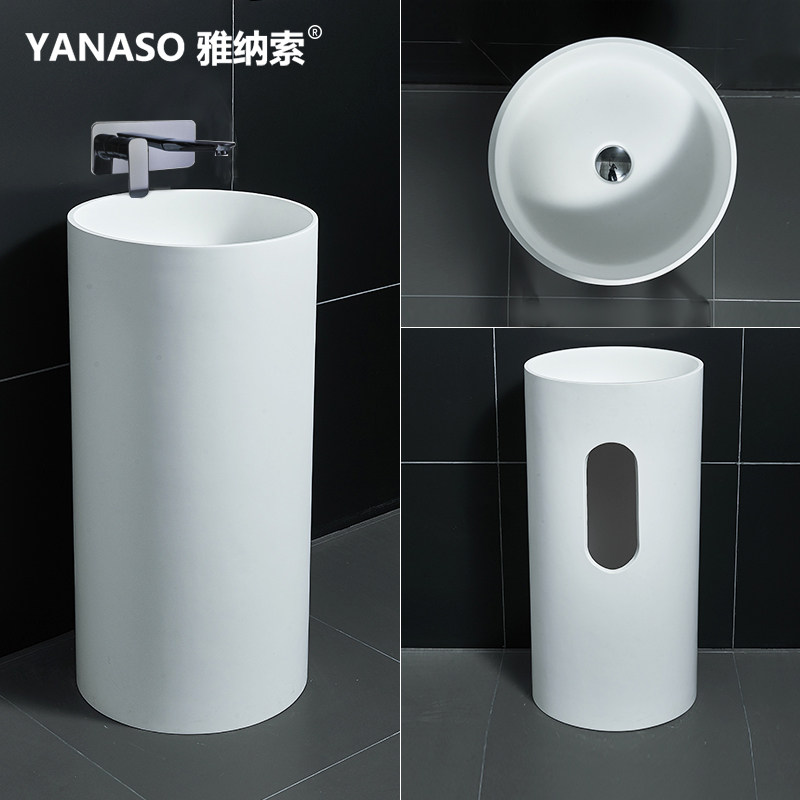 Janasso Washbasin Round Artificial Stone Upright Post Basin Floor Type Washbasin One-piece Hotel Makeup room Face Basin