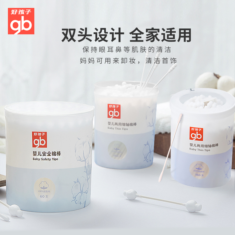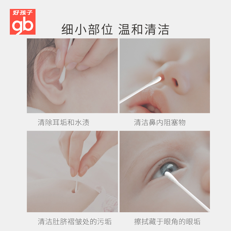 Good baby baby baby children's thin shaft cotton swab cotton swab cotton material baby cleaning cotton swab ear and nose cleaning