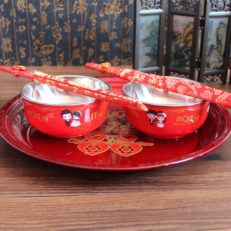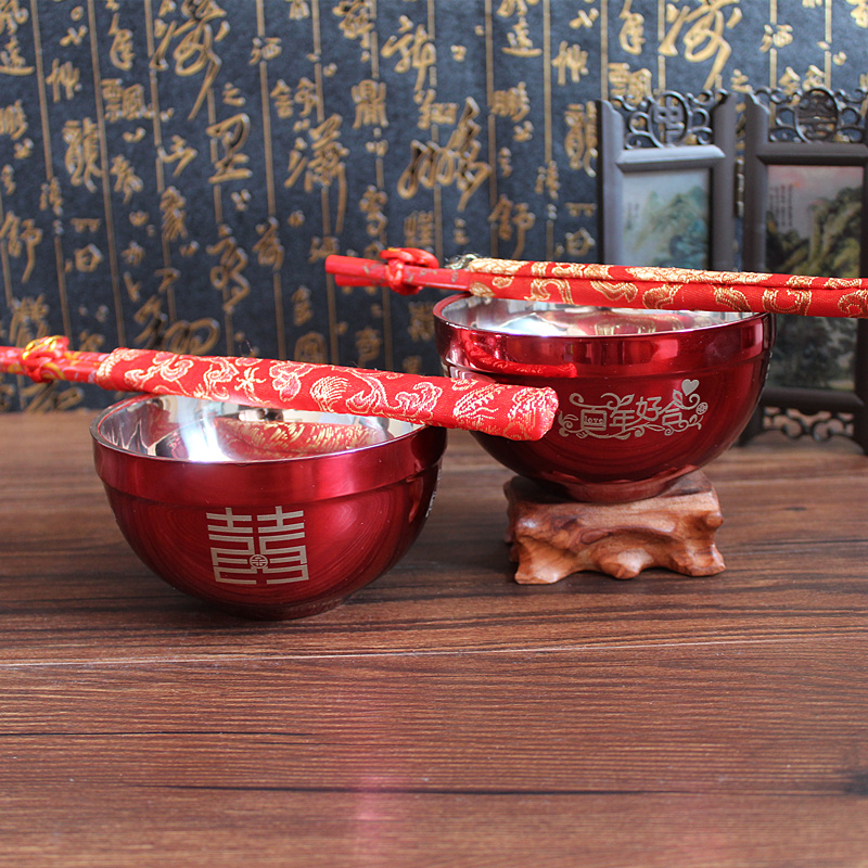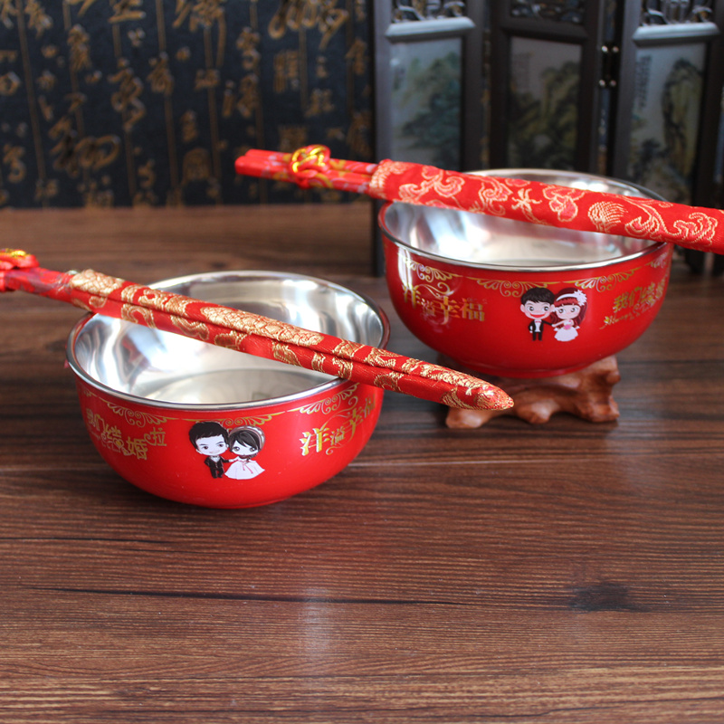 Wedding red bowl hi bowl set a pair of bowls pair chopsticks red bowl chopsticks hi chopsticks Chinese wedding props wedding gift
