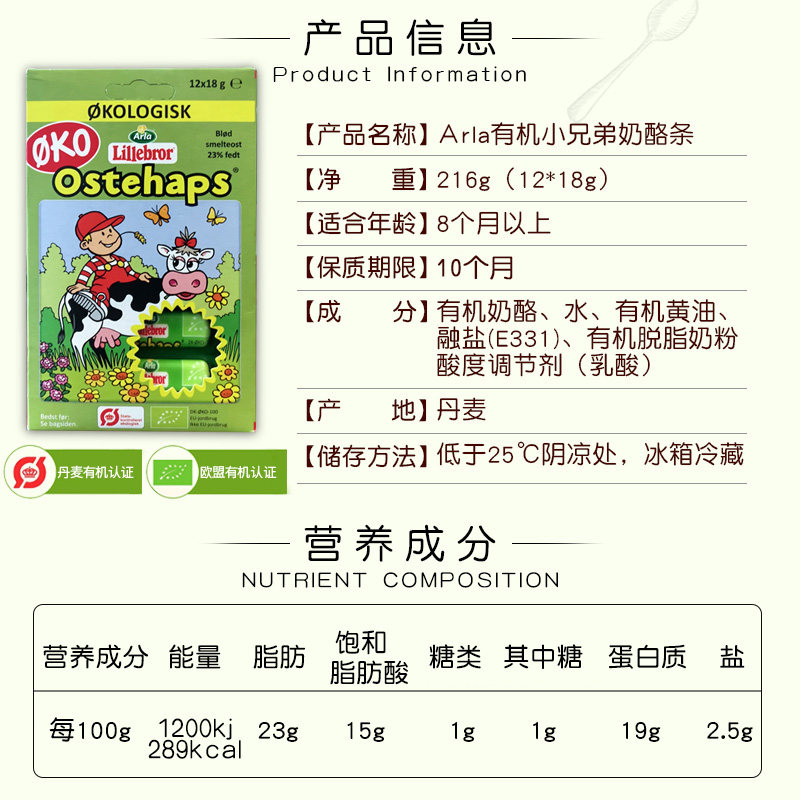 Danish arlaala organic cheese strips baby food instant cheese stick snacks for children are not on fire 12 strips