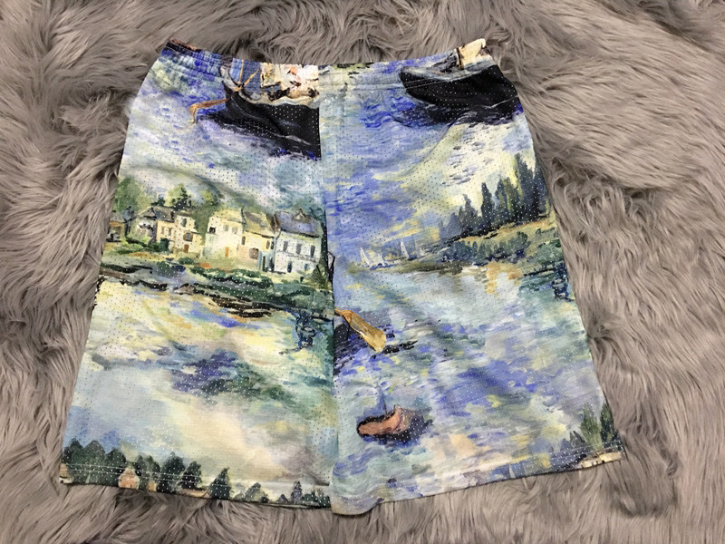 Homemade right version 19SS OW Monet oil painting shorts Painted Mesh Beach Pants Boomers Shorts Male Tide