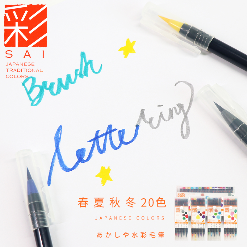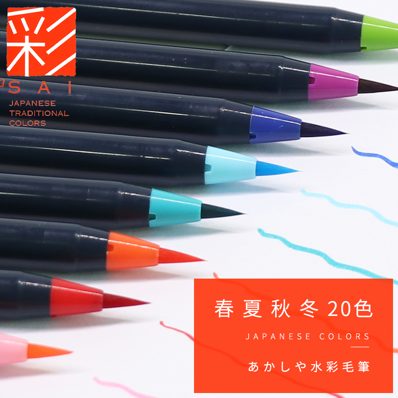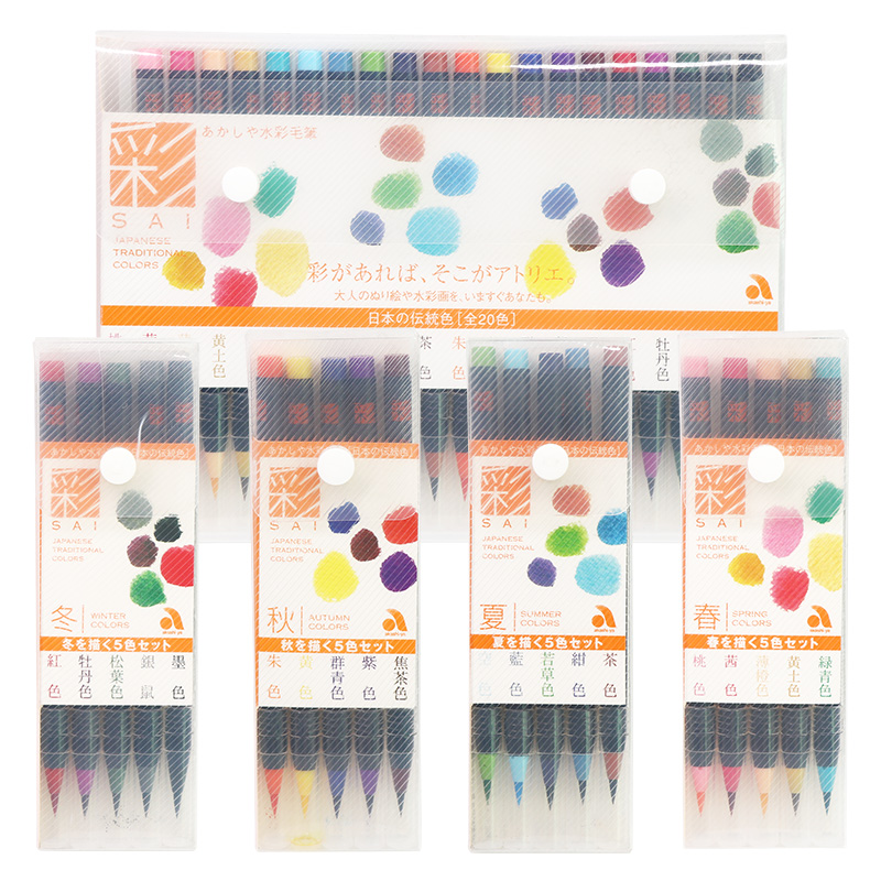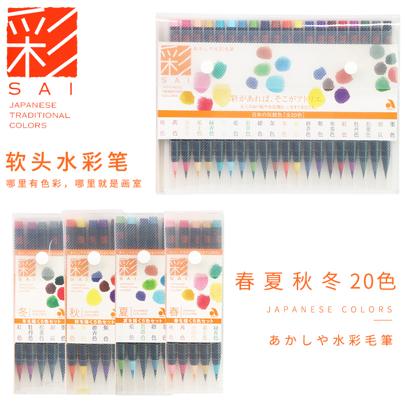 (color SAI watercolor brush) cherry blossom soft head watercolor pen Japan traditional color 20 color nayrian pen color show Lipen spring summer autumn winter season 5 colors suit akashi-ya watercolor brush pen