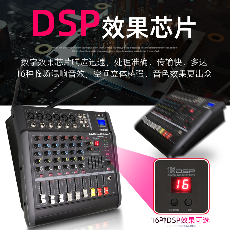 Glen Ralston 6-way mixer with amplifier All-in-one wireless microphone Audio conference recording Home k song small speaker set with effect KTV Bluetooth USB