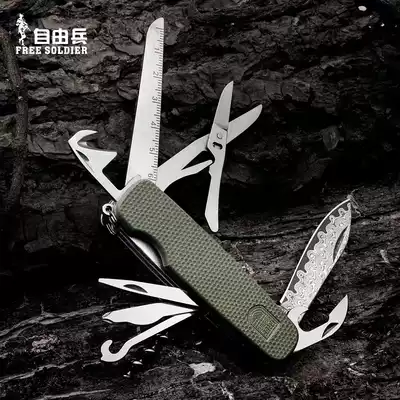 Free soldier outdoor damascus steel knife multi-function self-defense field survival self-defense tactical folding knife combination