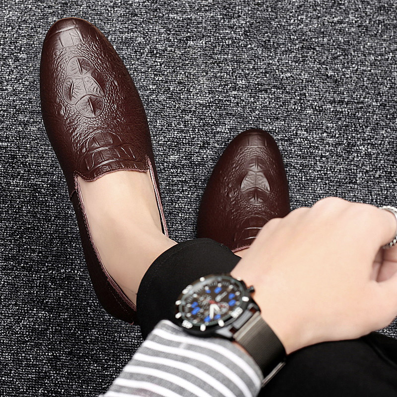 Summer genuine leather crocodile tattooed small leather shoes men's casual bean-bean shoes Han version 100 hitch a foot pedal sloth shoe wave