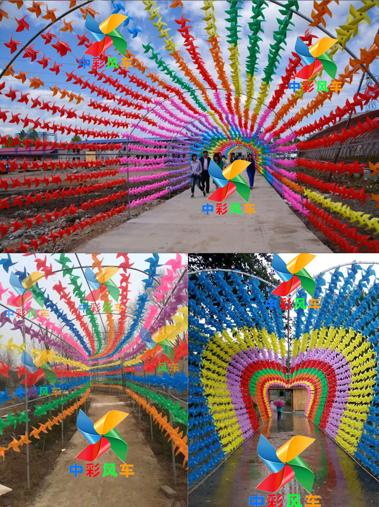 Small Windmill Strings Plastic Hanging Accessories Wind Scenic Area Tunnel Kindergarten Four Leafy Windmill 8 Color Selection Scenic Area Decoration Toy Getaway