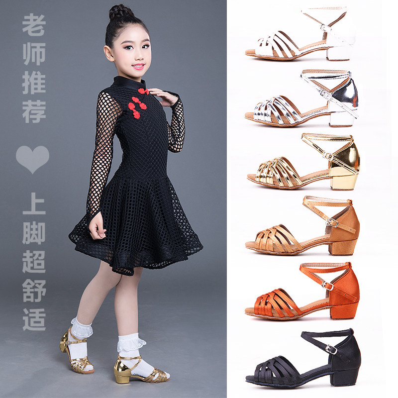 Latin Dance Shoes Children Girl Girl Girl Dance Shoes Professional Soft Bottom with High heel Toddlers Dance shoes beginners