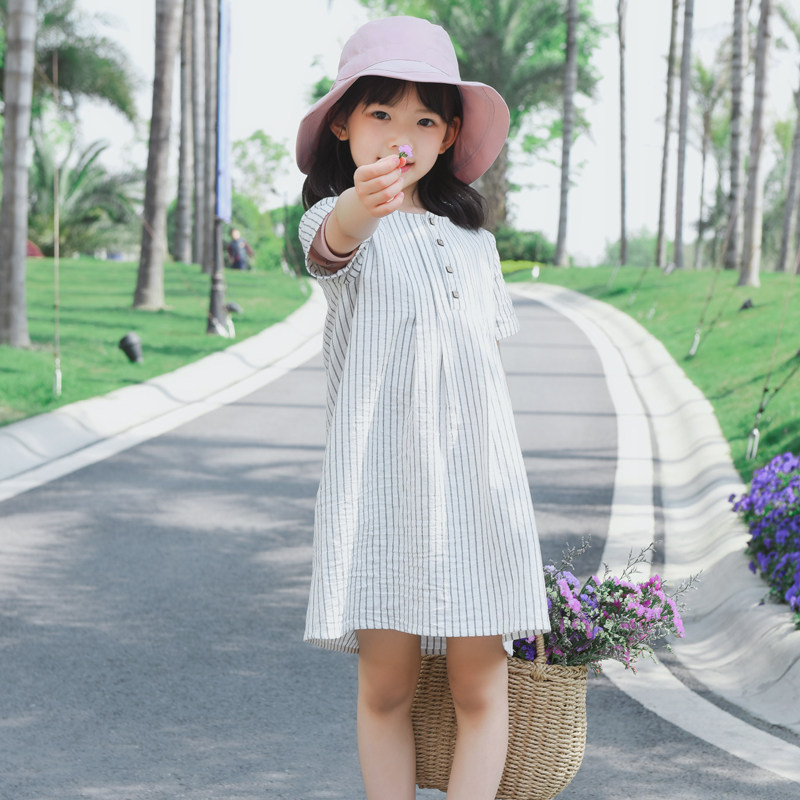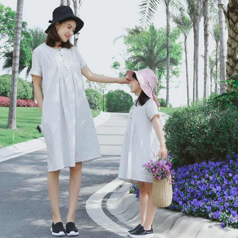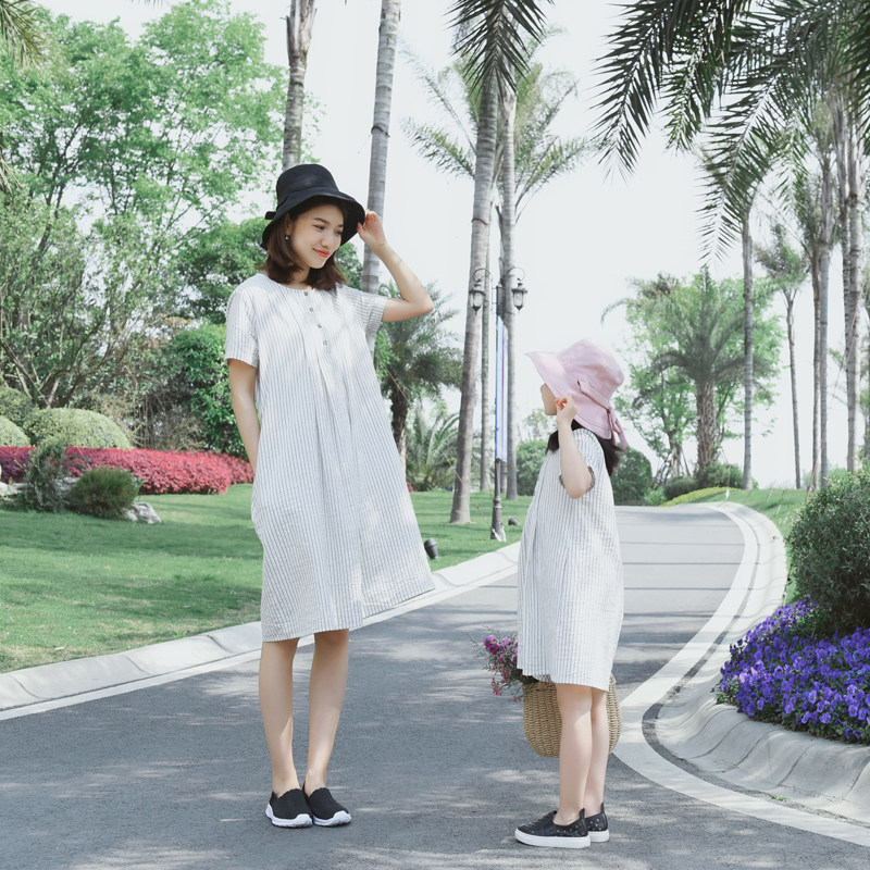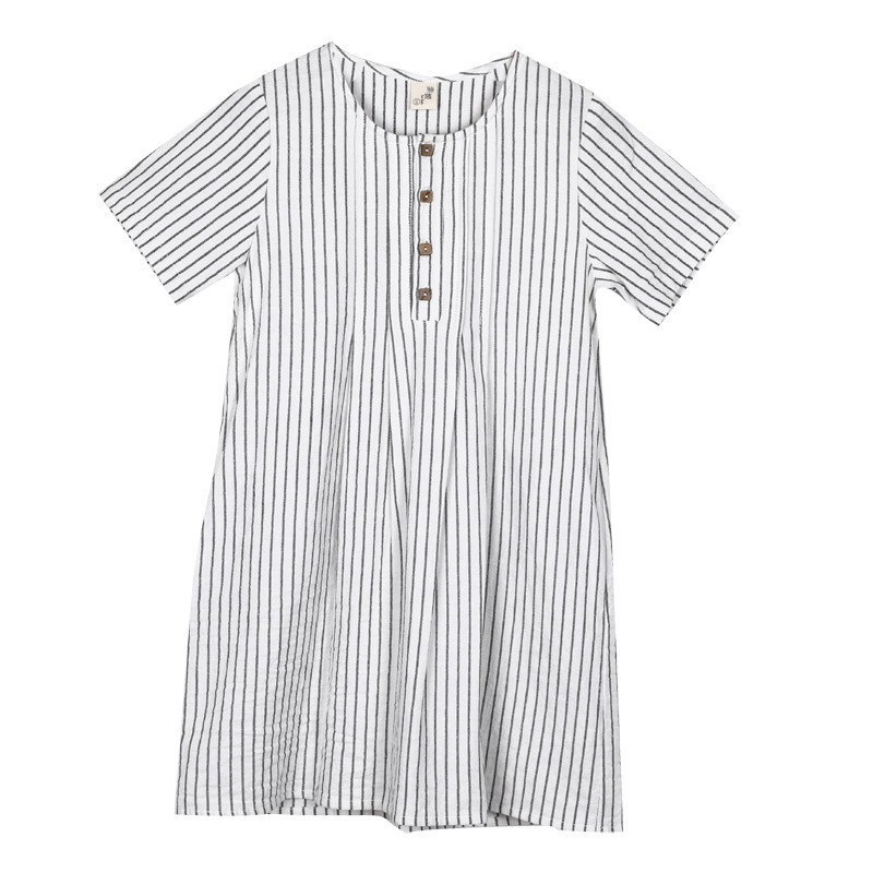 2022 Summer Dress New Girl Art pro-Dress Pure Cotton Korean Version Striped Loose Mother Women Dress Foreign Pie