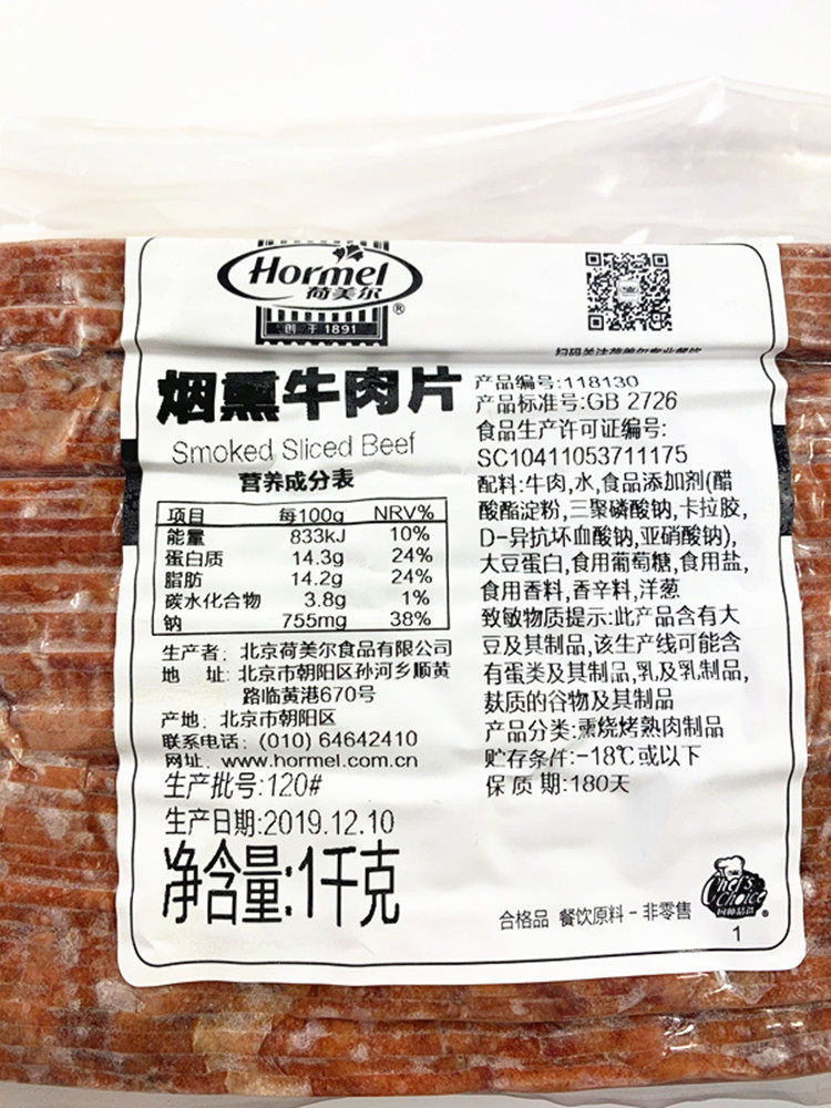 Humel Smoked Beef Slices 1kg Beef Bacon Marinated Beef Frozen Salad Pizza Dining Original