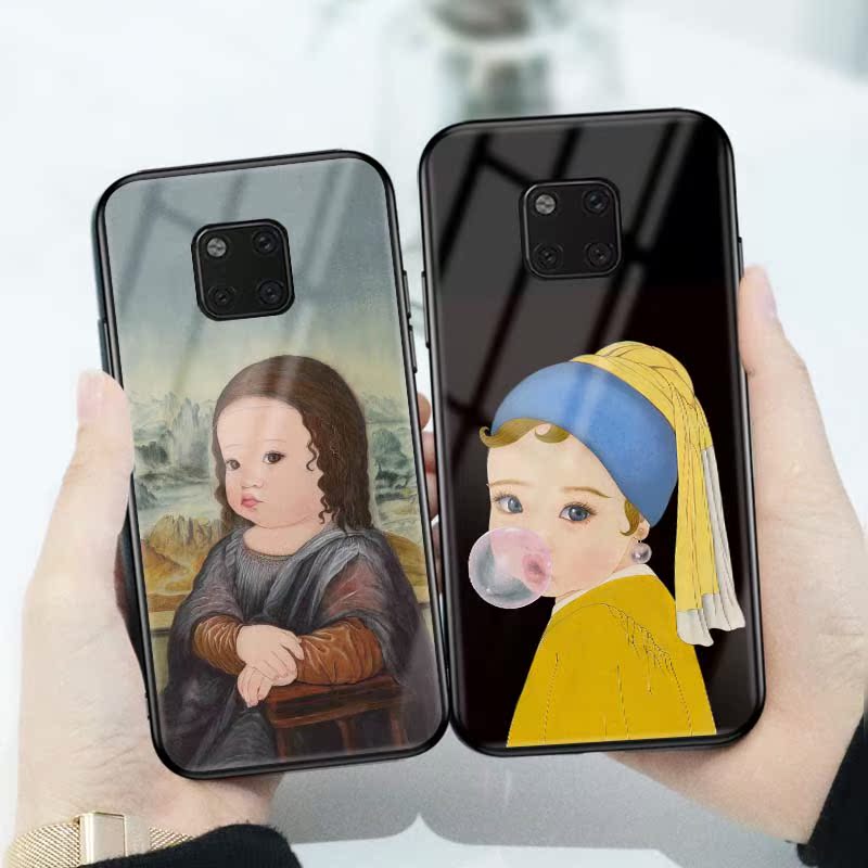 Suitable for Huawei mate20 full edge mate20pro protective case mate20x mobile phone protective case glass case m20 Huawei pro interesting fun super cute girl
