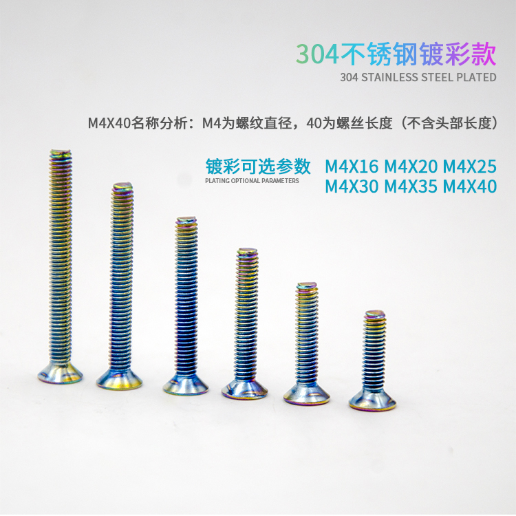 Countersunk screw M4x16 plated colour countersunk head screw M4x20 M4x25 plated with colour countersunk head screw M4x30 plated colour countersunk head screw M4x35 plated colour countersunk head screw M4x35