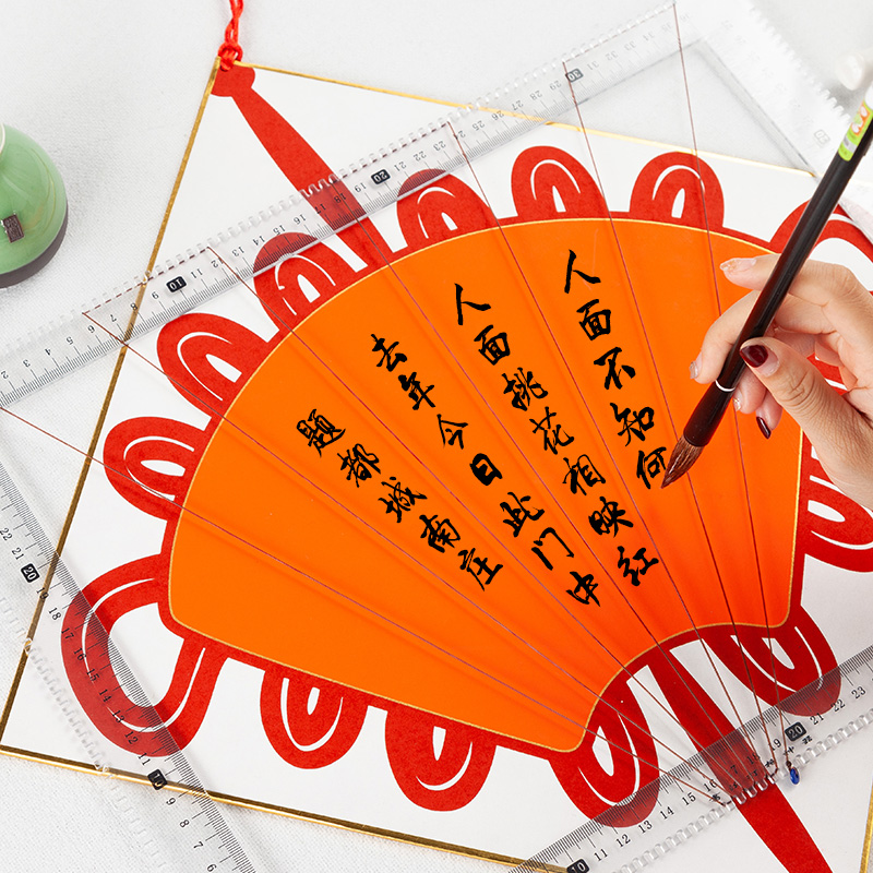 Calligraphy scale ruler Grid artifact Incognito multi-function calligraphy practice ruler set Checkered vertical grid grid device Grid ruler Fan-shaped calligraphy drawing line Rice paper soft ruler