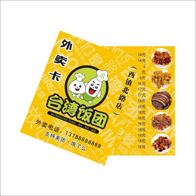 Promotional leaflet Takeout card Folding point card Custom PVC menu design Flower shop message card After-sales card printing Beauty vouchers Hot stamping business card making Meituan Hungry? Delivery order card