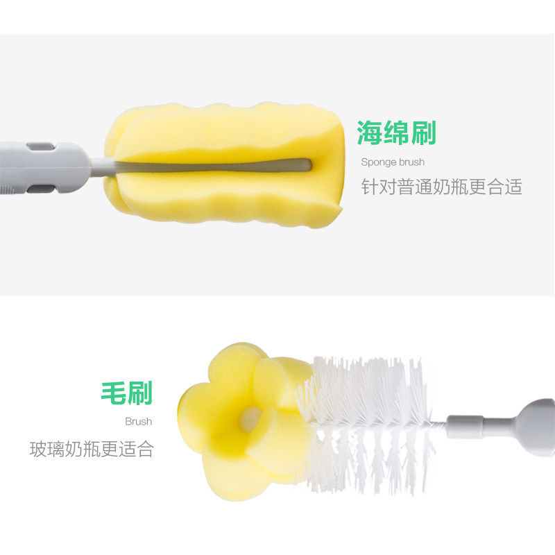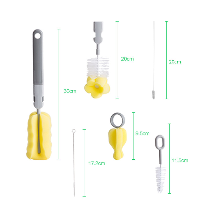 Bottle brush Baby wash bottle brush Pacifier brush Straw brush Cleaning cleaning brush Sponge set 360 degree rotation