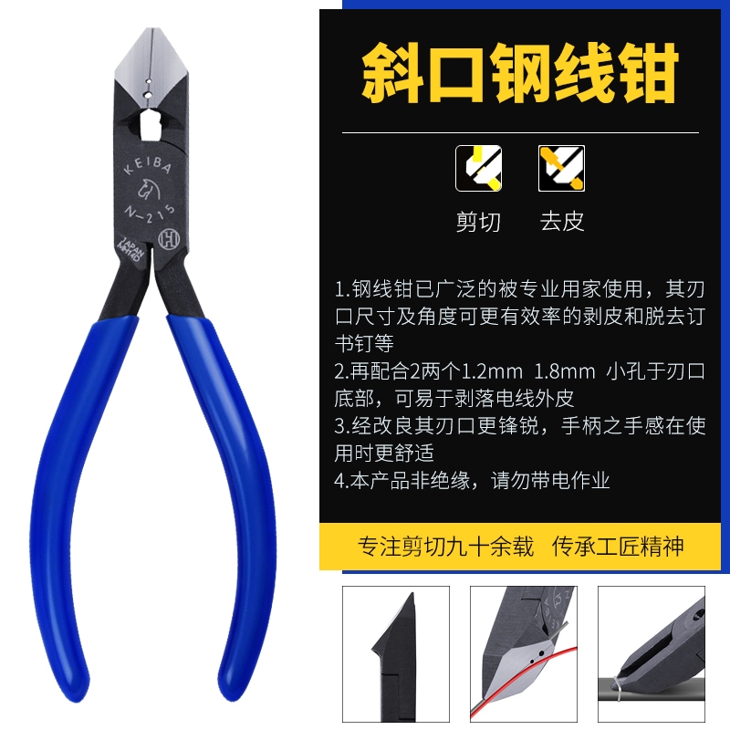 Japan KEIBA horse brand small mini wire pliers with hard E-shaped nail pulling multi-function bevel N214 215 216