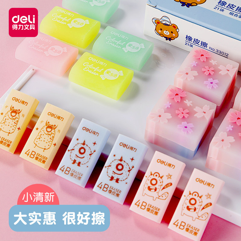 Deli stationery eraser for students to wipe clean without leaving a trace Creative children's cartoon school supplies 2b art debris-free eraser for primary school students drawing eraser