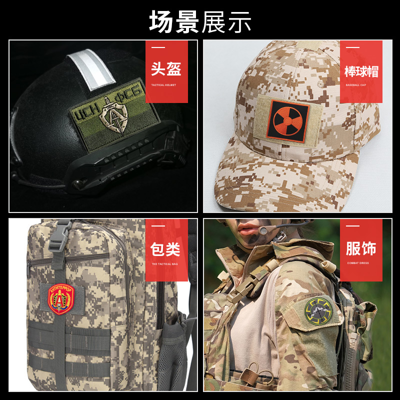 Embroidery-Sun Embroidery-Blue Eagle Embroidery-Scorpion Embroidery-Nuclear Radiation (square)Embroidery-Nuclear radiation (hexagon)Embroidery-Red Bull's Eye Embroidery-Beaker Embroidery-Alpha (Red)Embroidery-A