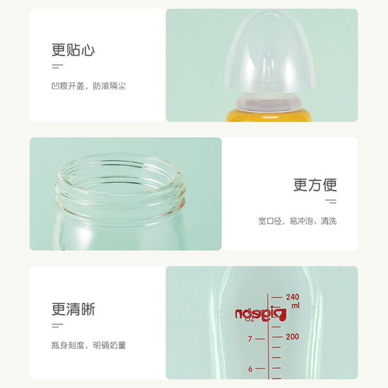Belle wide-caliber glass bottle newborn baby baby anti-flatulence baby bottle with straw grip 160 240ml