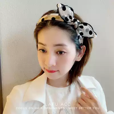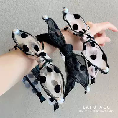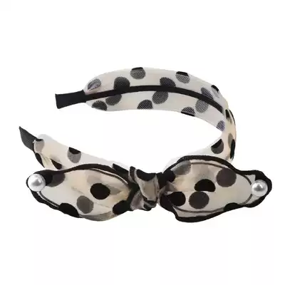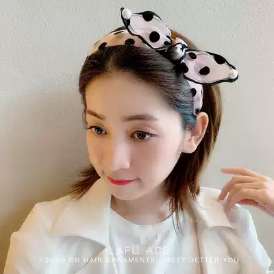 South Korea gauze polka dot headband nv wang red ribbon pearl headband pressure hairclip cover sui fa headdress wash hair band