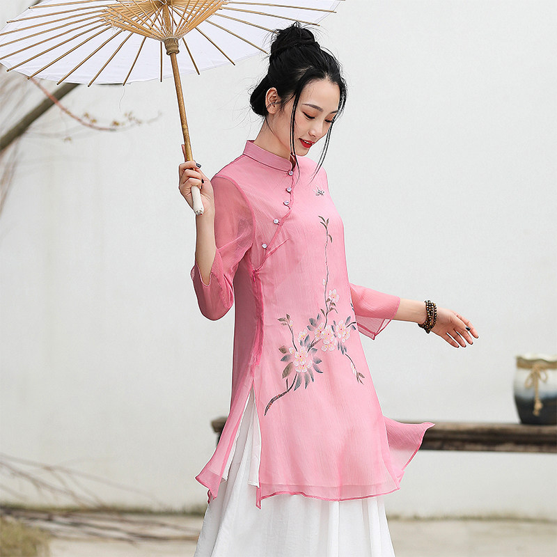 Tang Dress Young Edition China Wind Women's Dress Improvement Fashion Retro Zen Chinese Style Blouse Chinese Blouse Tea Suit Fairy Qi 663