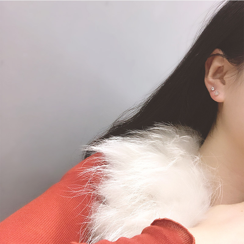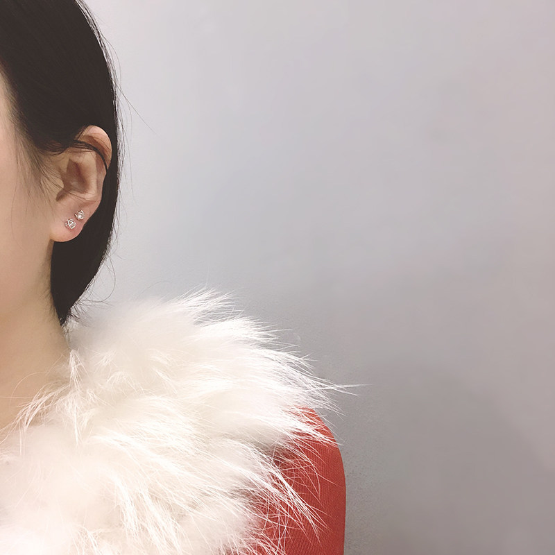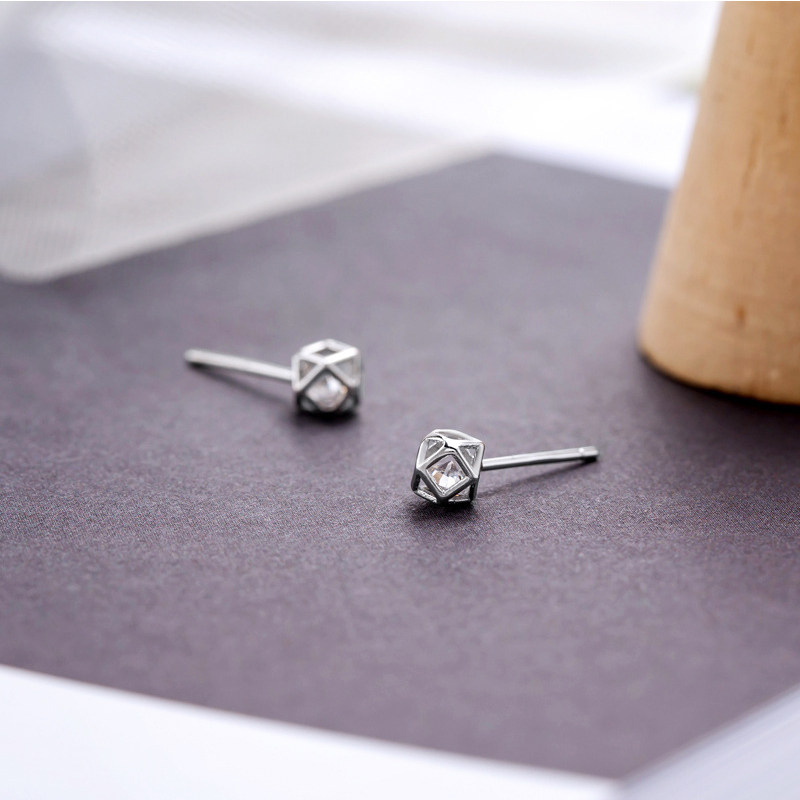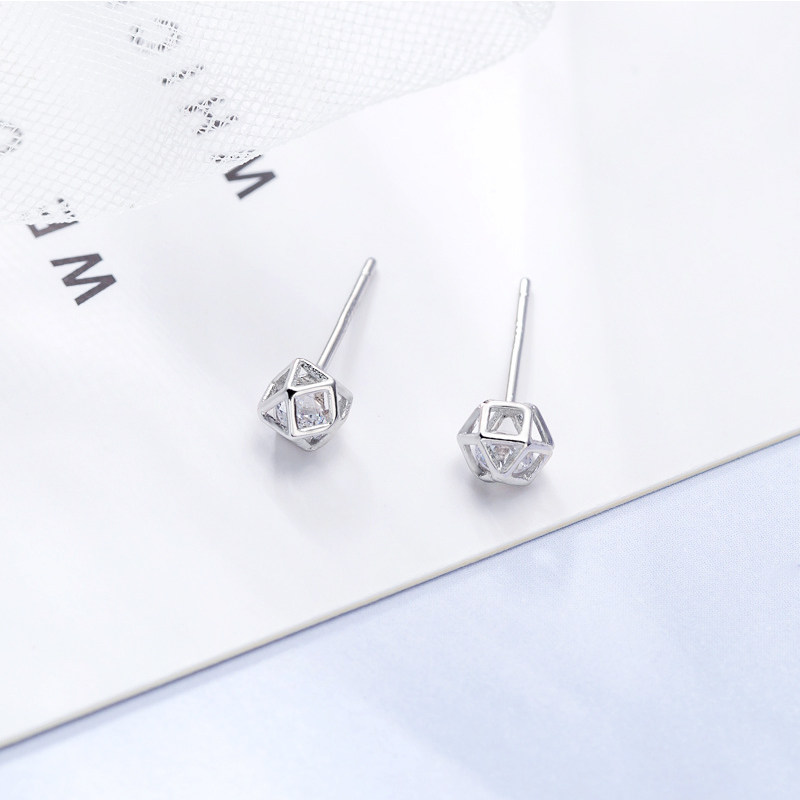 Rubik's cube zircon earrings 925 whole body sterling silver mini delicate three-dimensional polygon earrings female 2019 new earrings
