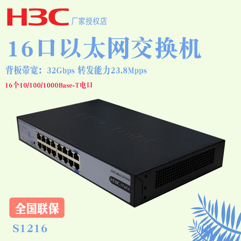 H3C Huazzo S1216 16 mouth full one thousand trillion B Ethernet Switch network extension cord mute lightning protection diverter plug and play high speed iron shell exchanger Alternative S1216V