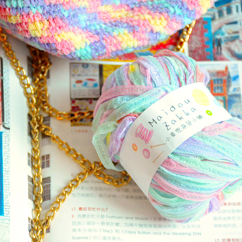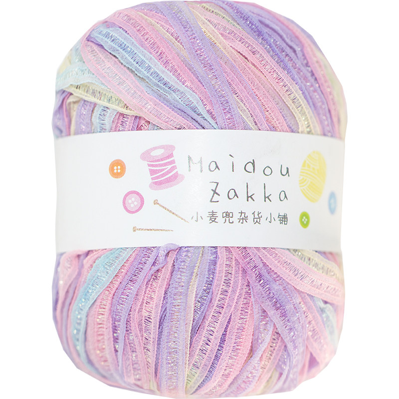 Color flash silk flat belt characteristic yarn Symphony section dyed wool knitting hook hat line summer diy handmade bag handmade