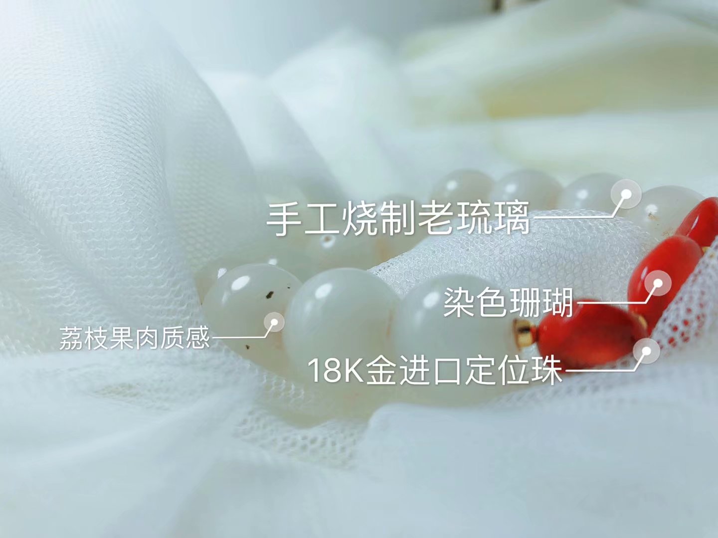 Soul fragrance original literature and art Old glass hand-made custom hand Kushiro hand string hand chain Princess smile