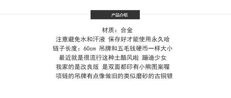 * month god girl * ** retro fairytale round small bear girl heart small bear necklace earth cool bundy pig girl