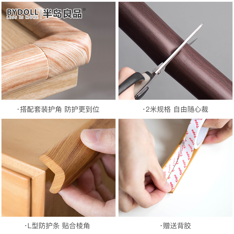 Log-colored baby baby safety anti-collision strip anti-collision strip thickened and widened children's table corner edge corner guard 2 meters