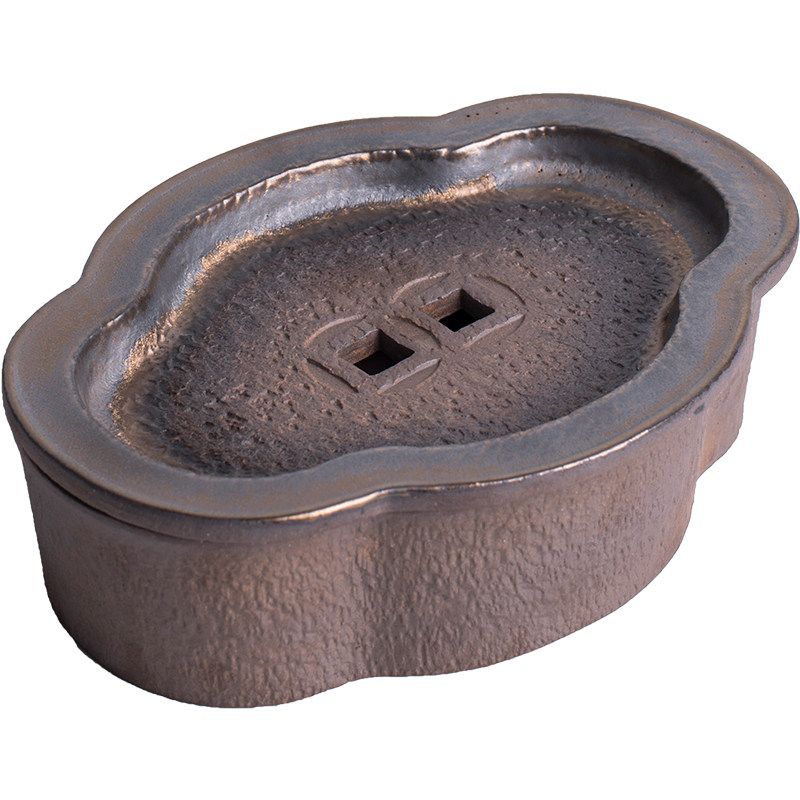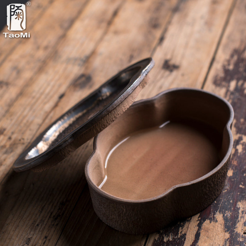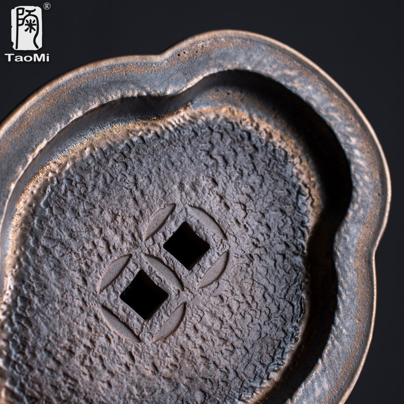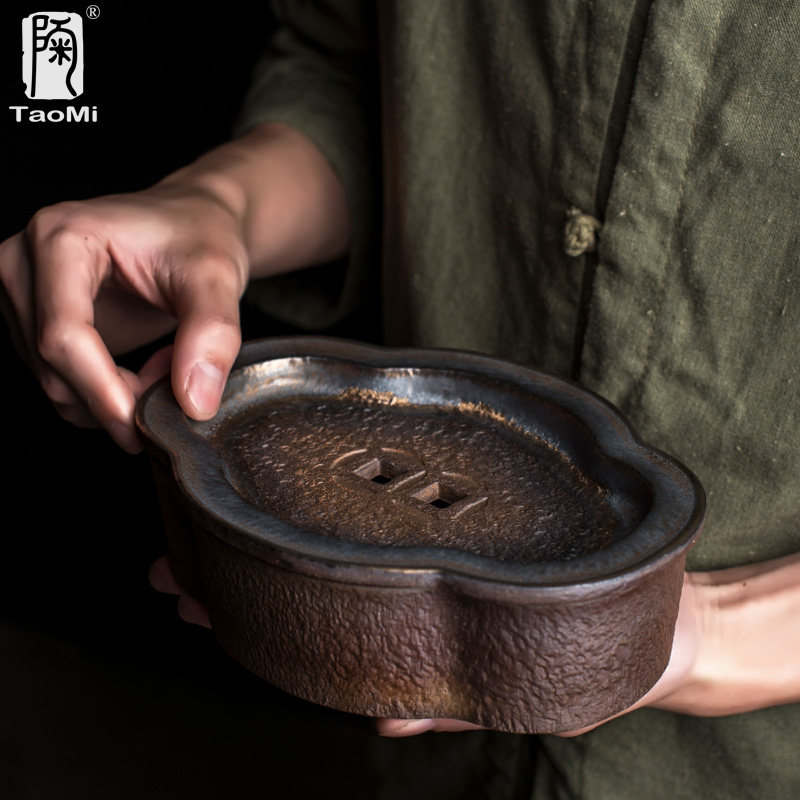Pottery fan gilt pot supporting pot pad large-capacity water storage dry brewing table rough pottery tea ceremony accessories creative ingot water inlet