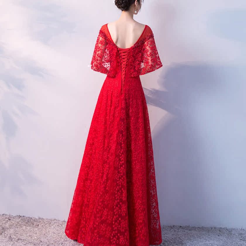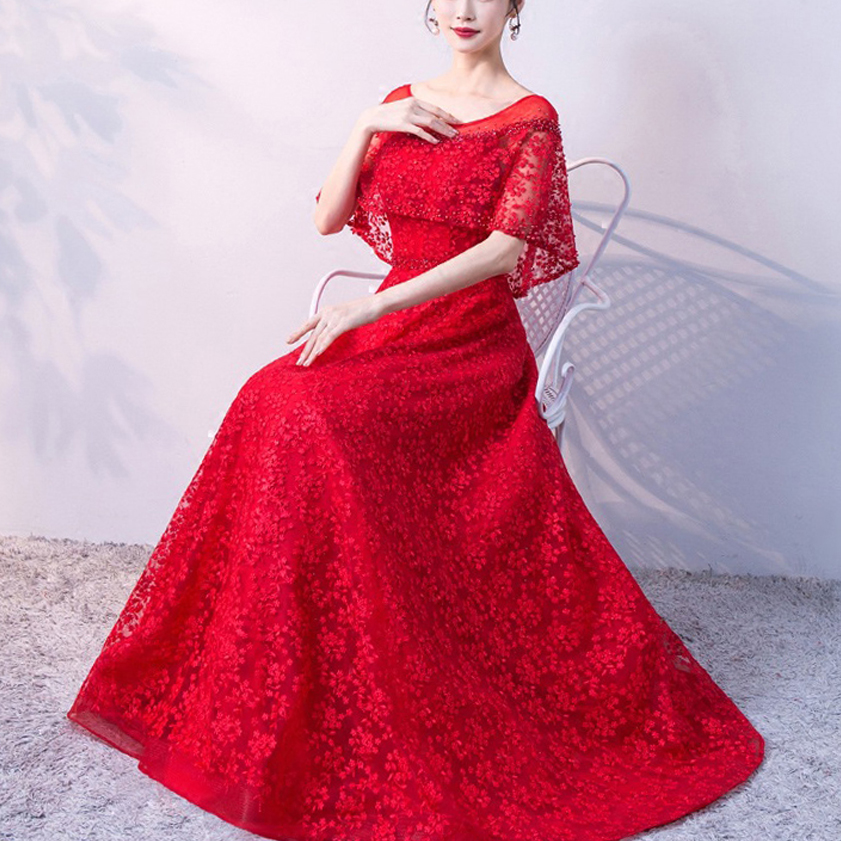 Dust Seine Six Heineken Bride Red Wedding Gown 2021 New word of the Shoulder Zodie Banquet Party Gown