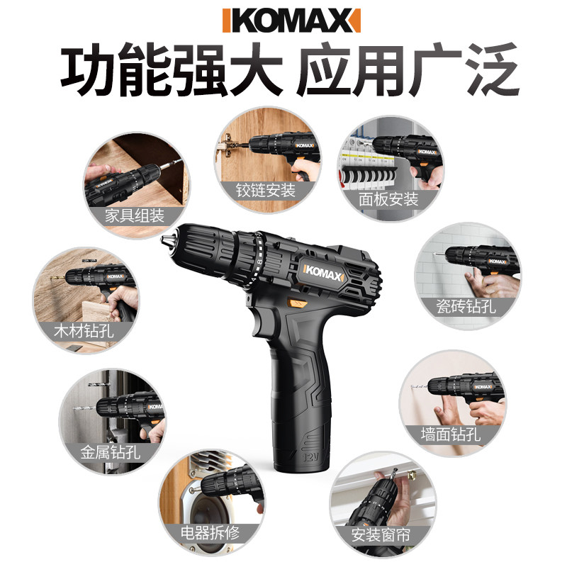 Comax flashlight to household impact drill Rechargeable electric screwdriver tool Pistol drill Lithium battery drill