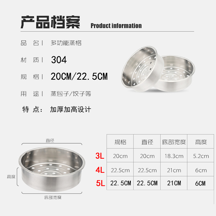 2 0L stainless steel steamer 3043L stainless steel steamer 4L stainless steel steamer 5L stainless steel steamer 3L-PP steamer 1 6L-201 stainless steel steamer