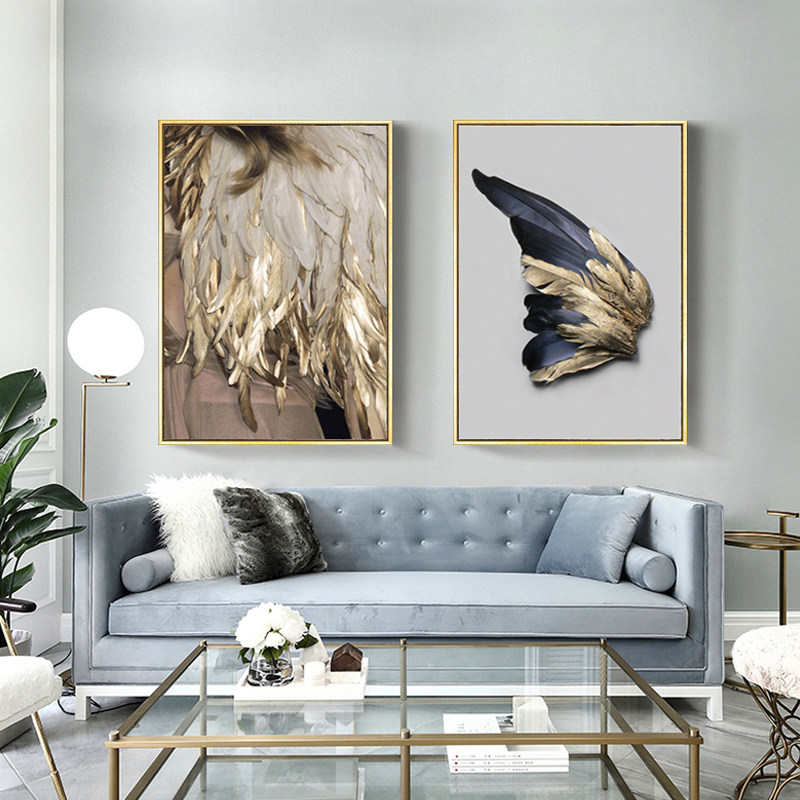 Nordic European and American women figure decorative painting bedroom bedside painting living room mural beauty salon clothing store light luxury feather hanging painting