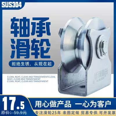304 stainless steel bearing pulley wire rope pulley U-shaped V-groove wheel pulley hoisting ring rail wheel lifting door