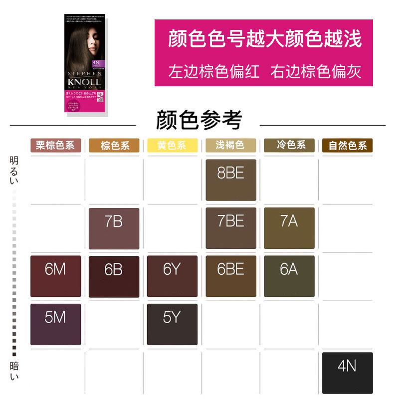 4N dark brown 1 case 5Y deep yellow brown 1 case 5M deep chestnut colour 1 case 6M chestnut colour 1 case 6Y yellow brown 1 case 6BE deep tea colour 1 case 6A cold brown 1 case 6B natural brown 1 case 7B