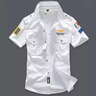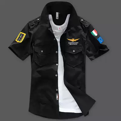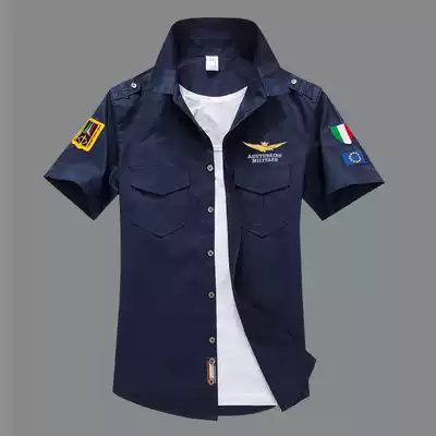 Summer and autumn Air Force One shirt men's short sleeve Italian badge military shirt professional shirt men's clothing tide