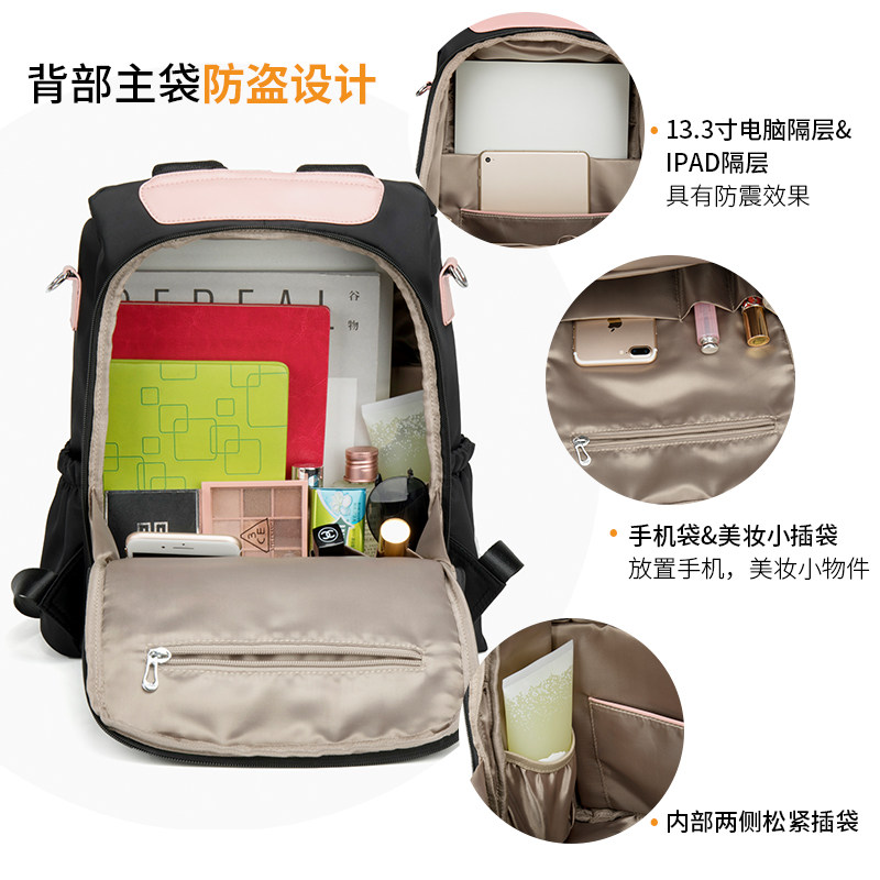 Double Shoulder Bag Women 2023 New Tide Oxford Cloth 100 Hitch Travel Computer Bag Large Capacity Bag Dual-use Casual Backpack-Taobao
