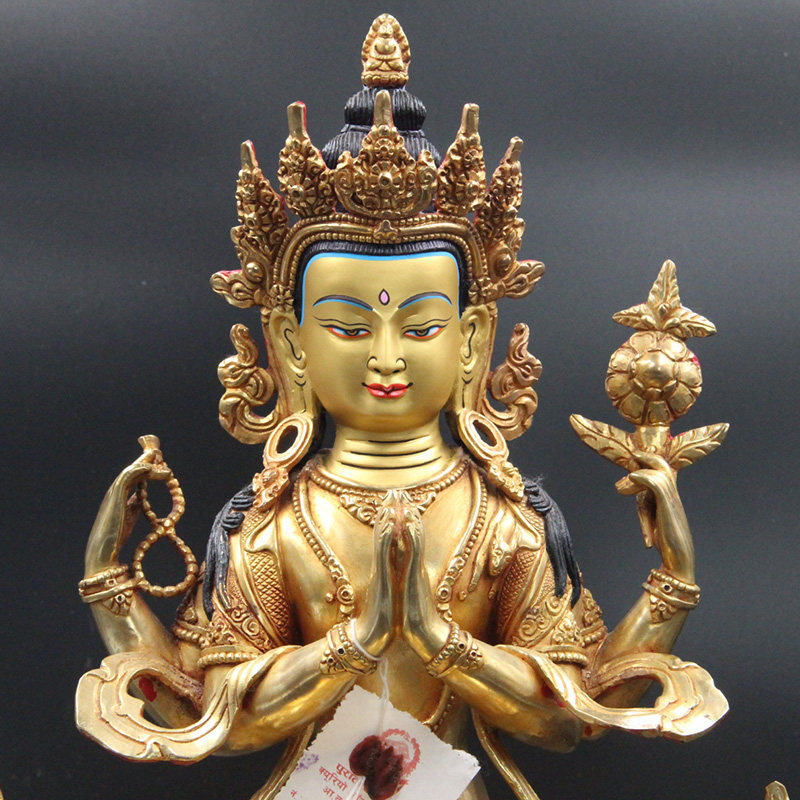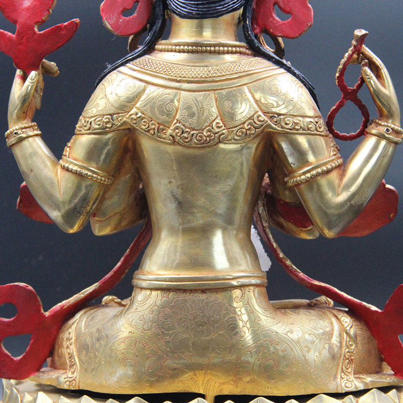 Nepal's four-armed Avalokitesvara Buddha statue Tibetan copper full gilt Avalokitesvara Buddha statue worship ornaments 35cm