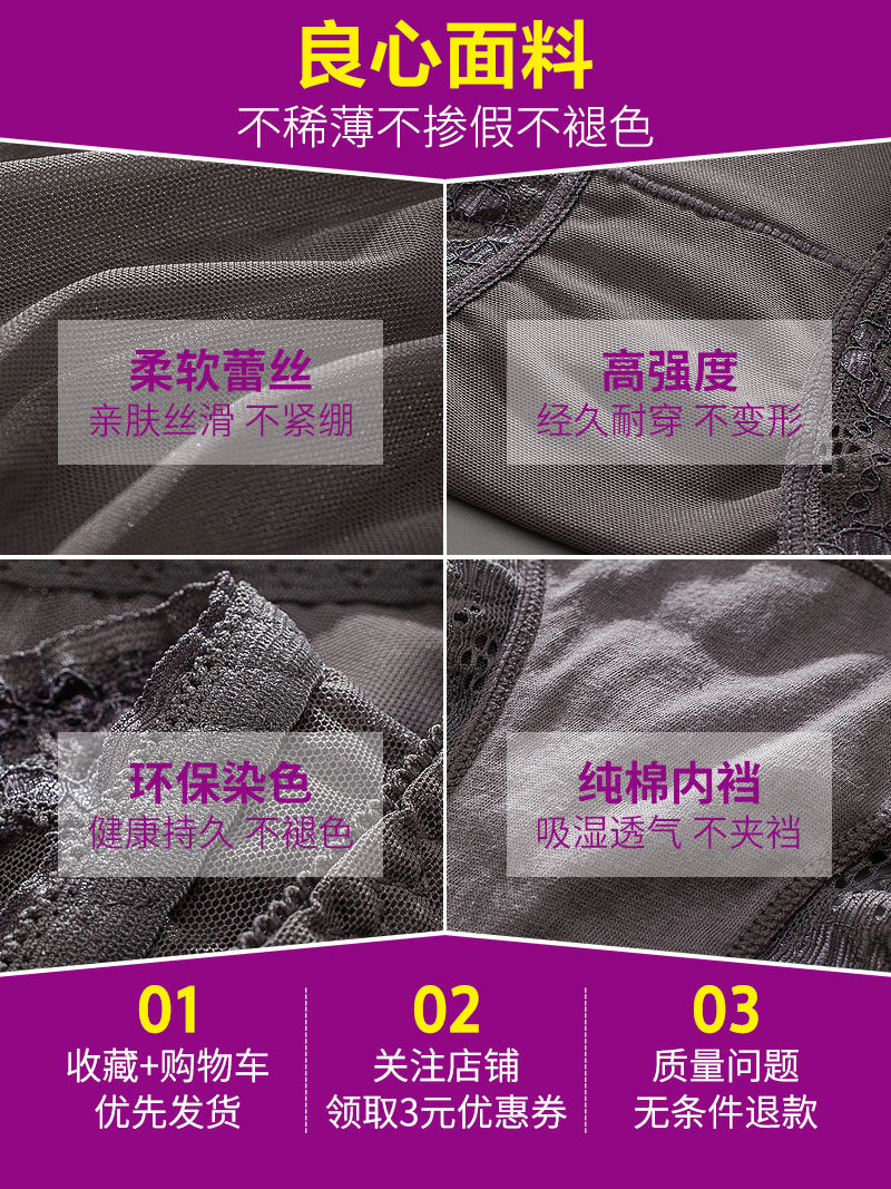 Sexy Briefs Lady Lace Transparent Mid Waist Pure Cotton Seductive Summer Thin Breathable No Marks Large Size Low Waist Triangle Pants
