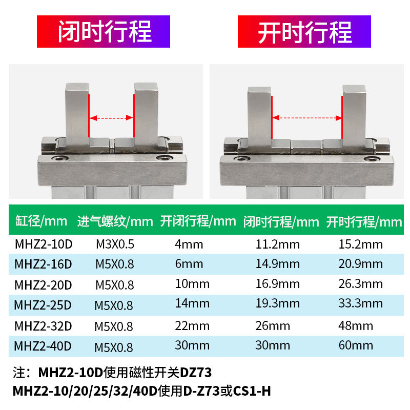 Pneumatic gripper parallel finger cylinder Extended stroke gripper fixture MHZL2-10D-16-20D125DSD2