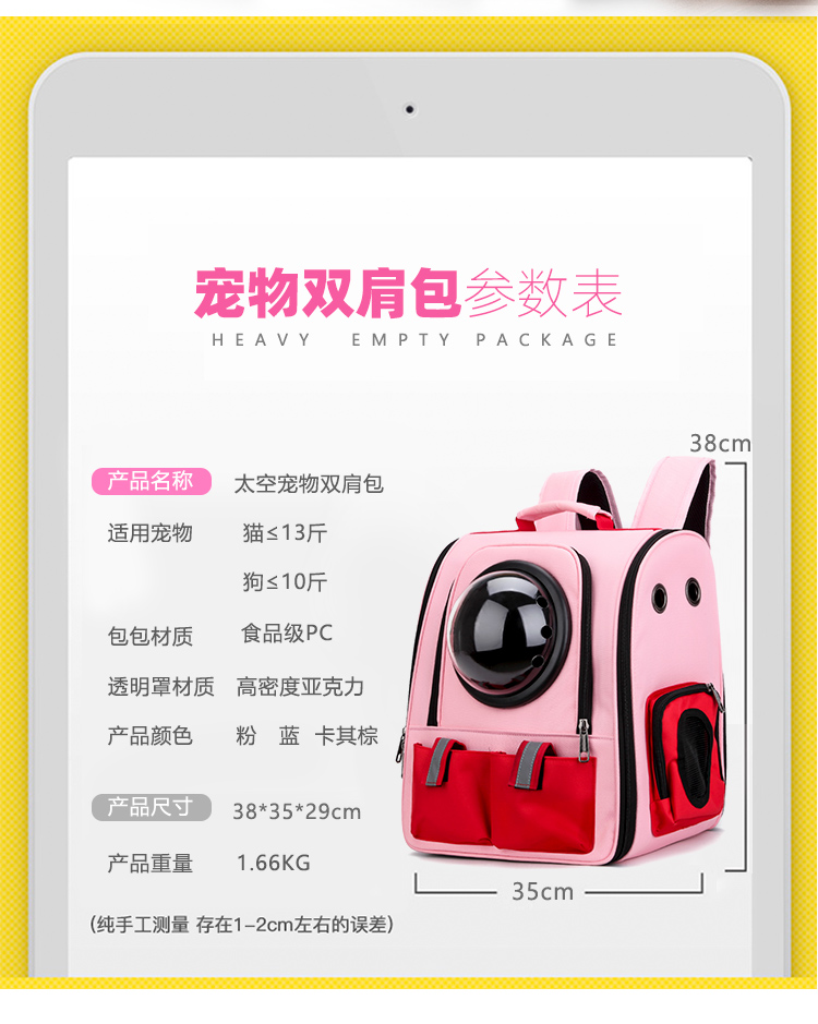 Pet backpack go out portable cabin dog cat cage school bag cat backpack cat bag space bag dog bag cat bag
