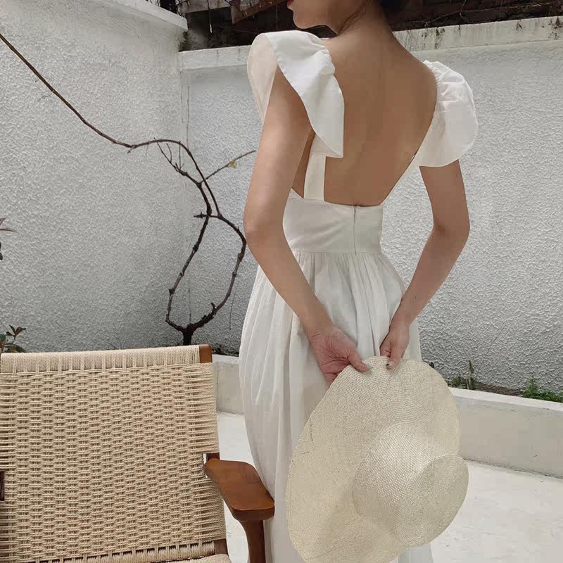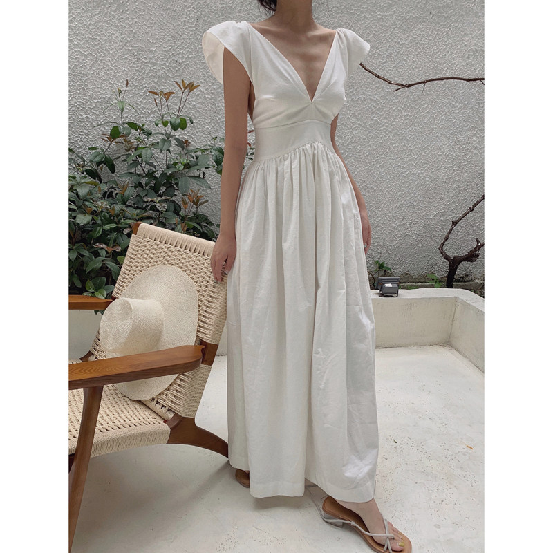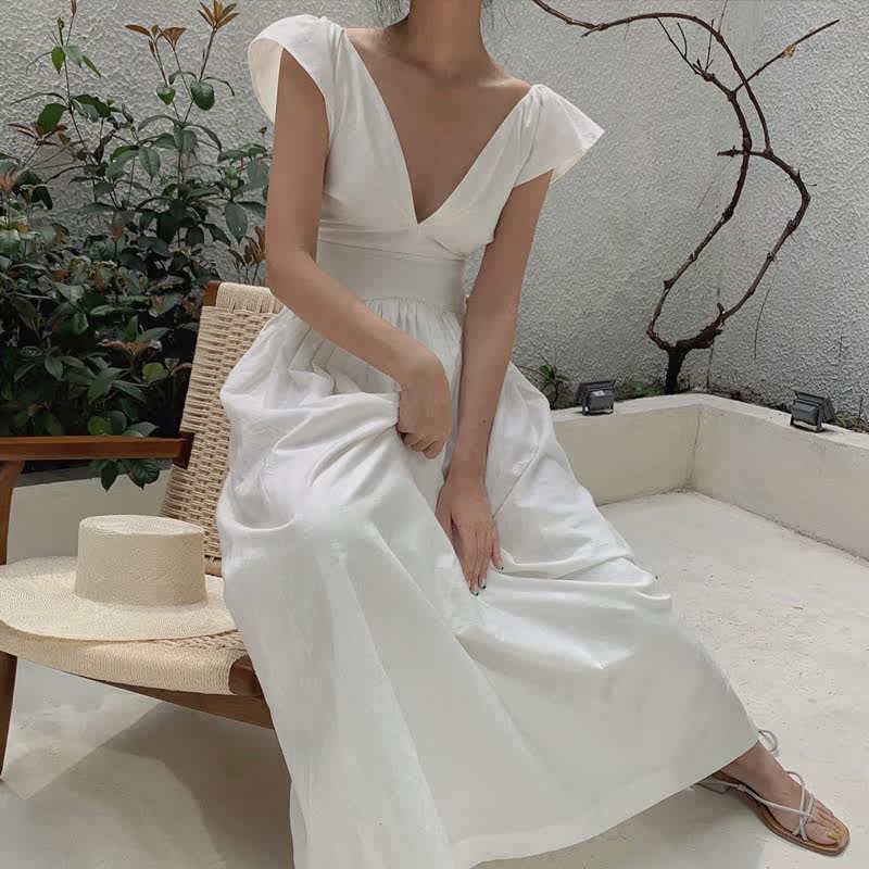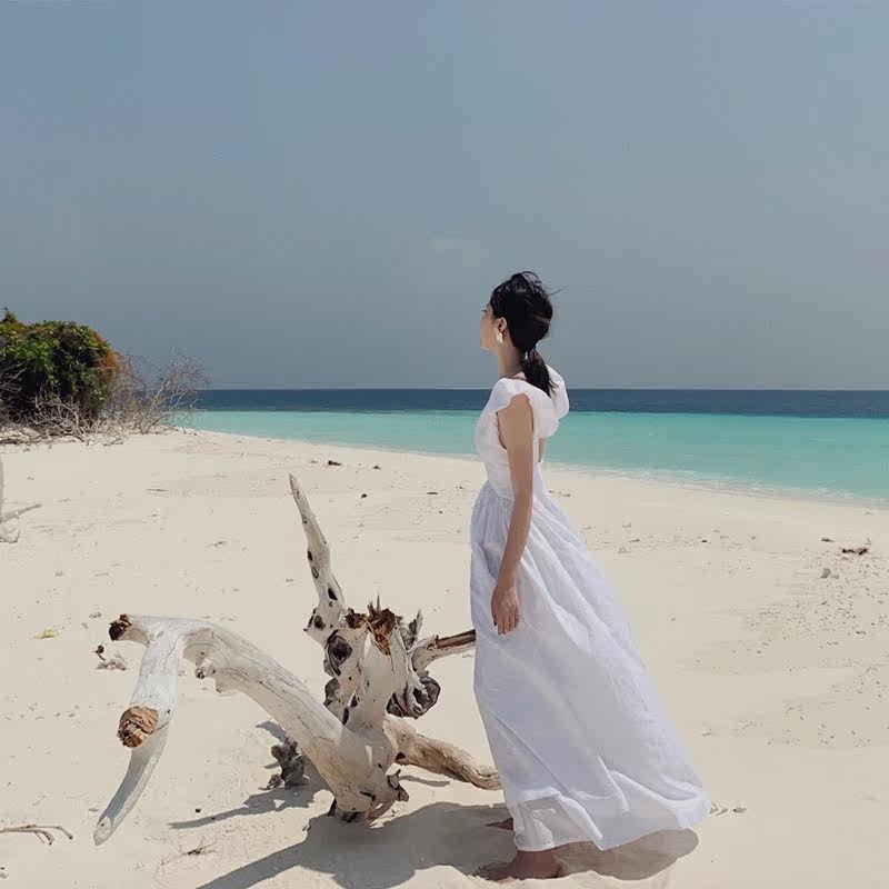 taupe store Premium texture linen holiday skirt Goddess skirt Halter three-dimensional cut travel dress